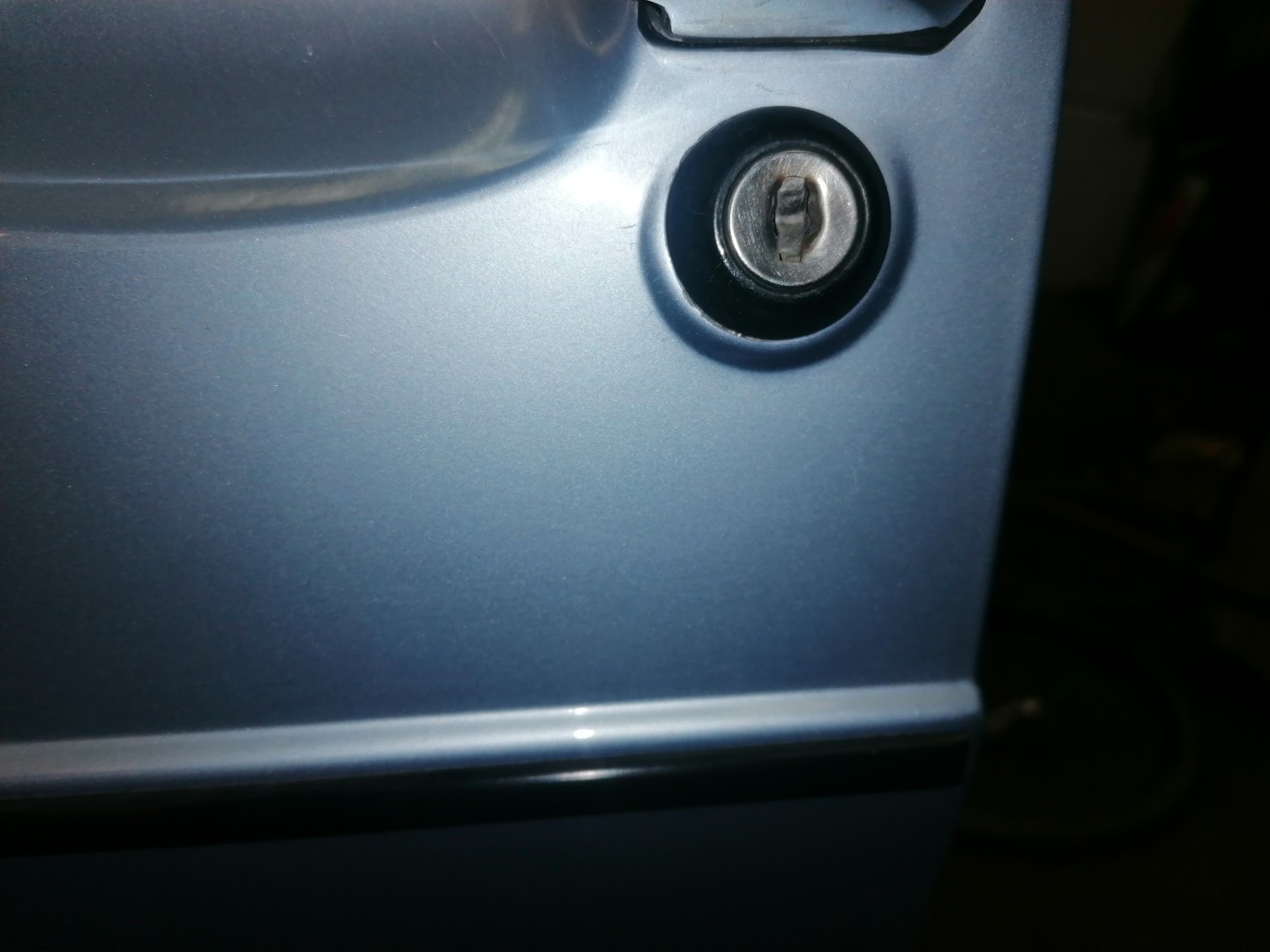 Här är bild på mejsel ett. (på en annan bil)Med låset löst kan man peta in denna lilla plast ring som låser låskolven i ”kistan”.