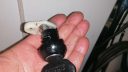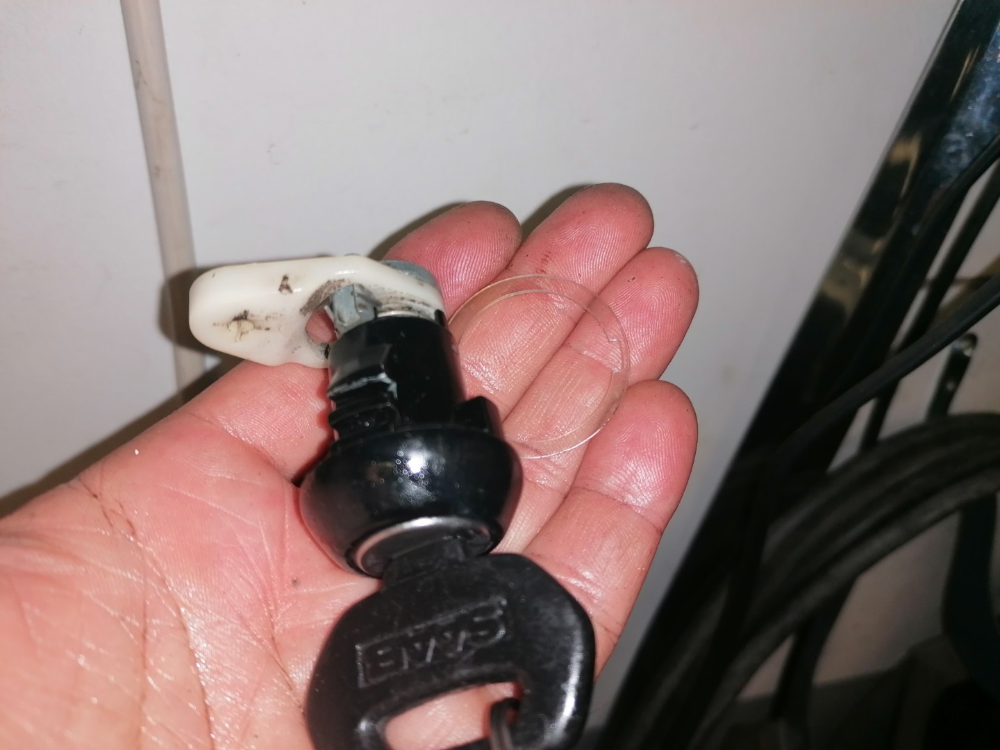 Här på bild med en ny plasteing som ska sitta mellan dörren och låset.