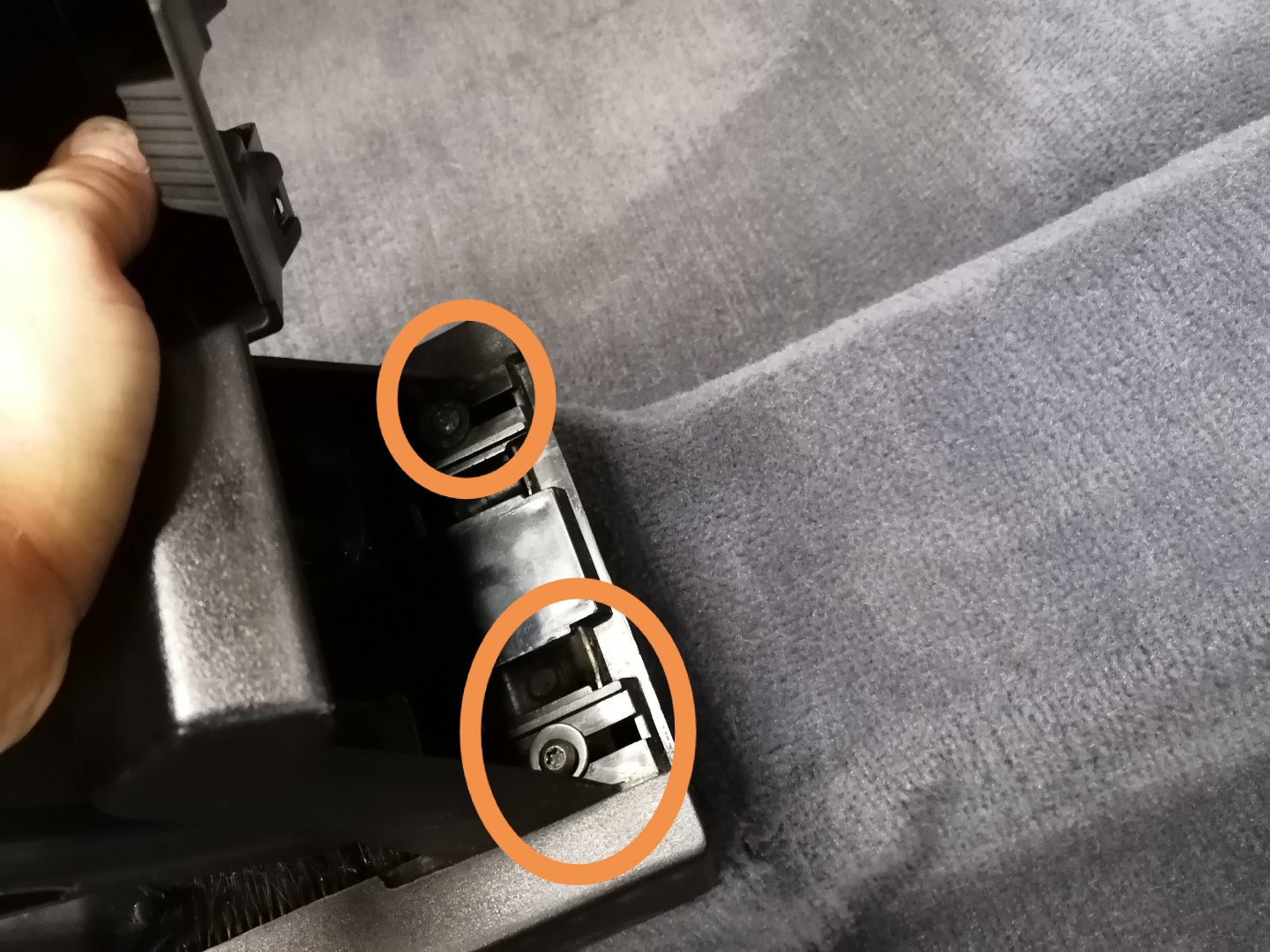 Där under sitter två skruv.