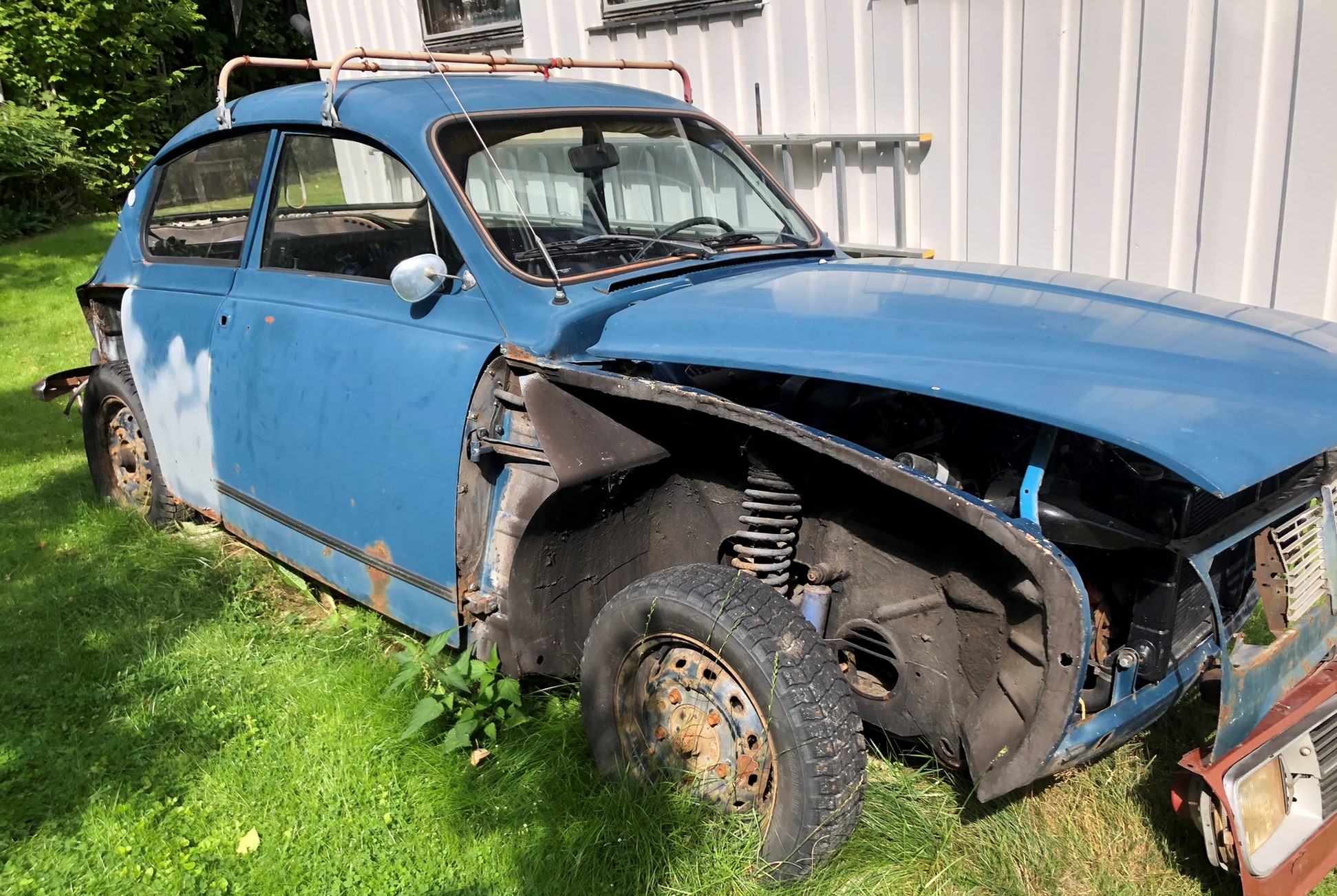Bilen stod inomhus från 2003 till 2020, men har nu stått på min gräsmatta i snart tre år.