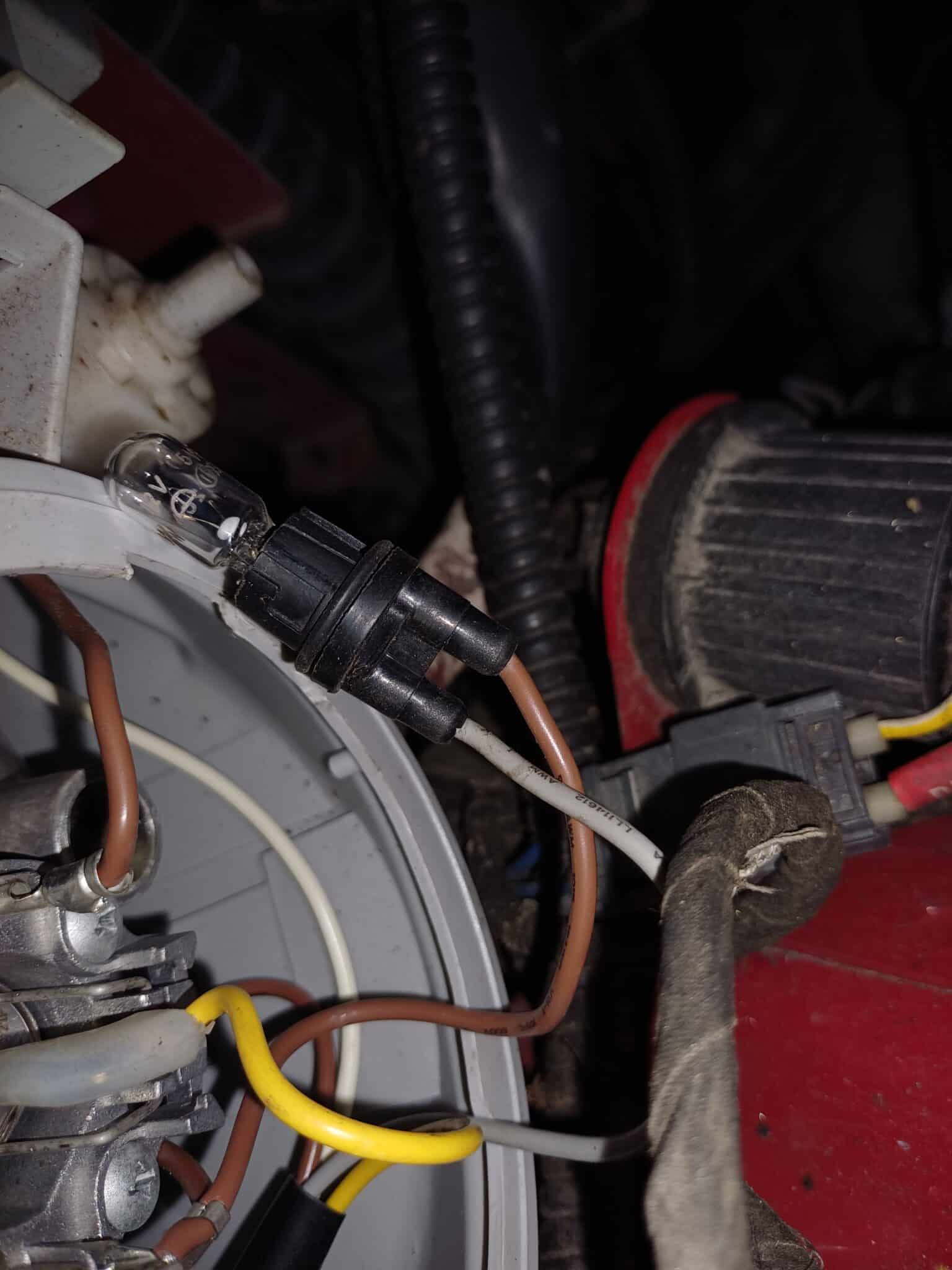 Vid tillfälle upptäkte jag att ett positionsöjus fram var slocket. När lampan demonterades visade det sig att dessa strålkastare inte är original utan eftermarknadsdito. Dessa har en sämre kvalitet på lamphållaren som smälter och således kortsluts. Detta fixar jag tänkte jag och gör om dom så att den smälta delen tas bort och fjädern i hållaren flyttas. Detta blev inte helt lyckat då kontaktytorna blev onödigt nära varandra = risk för kortis och noll bakljus. Jag byggde om sidoblinkerslampållarna istället så att dessa passade. Lite lödning osv senare så blev det bra!