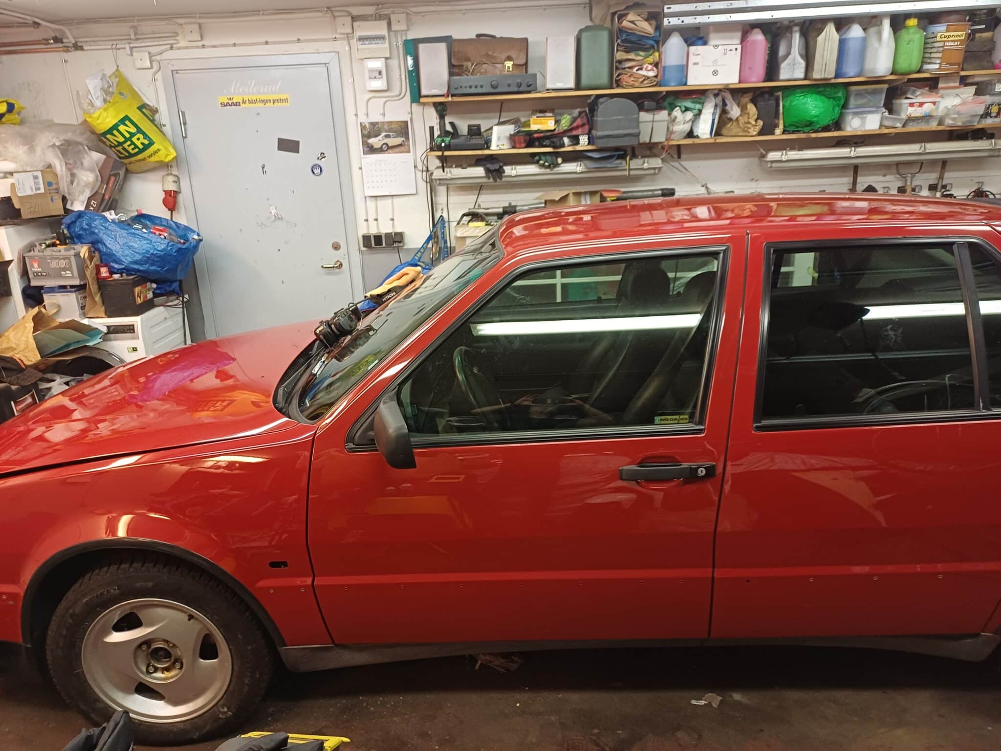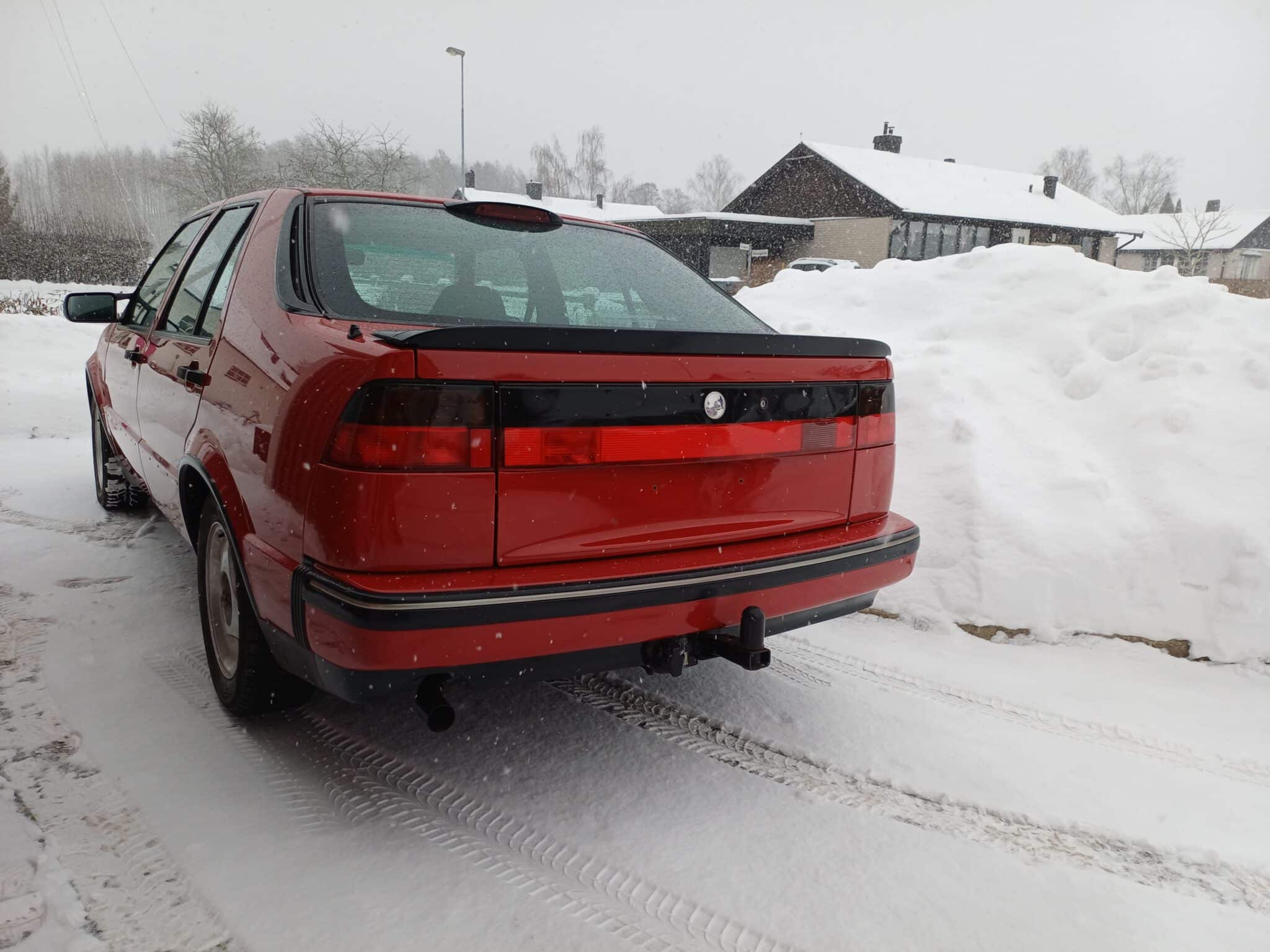 Vagnen i fråga bör presenteras som en värkande knöl hos tidigare ägare då bulten för remspännaren gett upp och flytt fältet varpå bilen blivit obrukbar. Den värkande knölen brast i höstas och av olika anledningar fick jag frågan om att köpa den. Men jag var väldigt tveksam eftersom jag gett bort alla mina 9000-relaterade grejer året innan. Jag lovade ändå att komma och titta. Någon mörk novemberkväll senare åkte jag och min fru (som är äventyrslysten) för att titta. Väl framme vid huset i skogens slut blir vi hänvisade till garaget. Åhå, den har stått inne alltså. Men när vi kommer innanför porten så ser jag en förskrämd CSE 2.3 Turbo i det som nog har varit denuttrycksfulla kulören Imolaröd full med det som naturen delar med sig av vid ett hus i skogens slut…