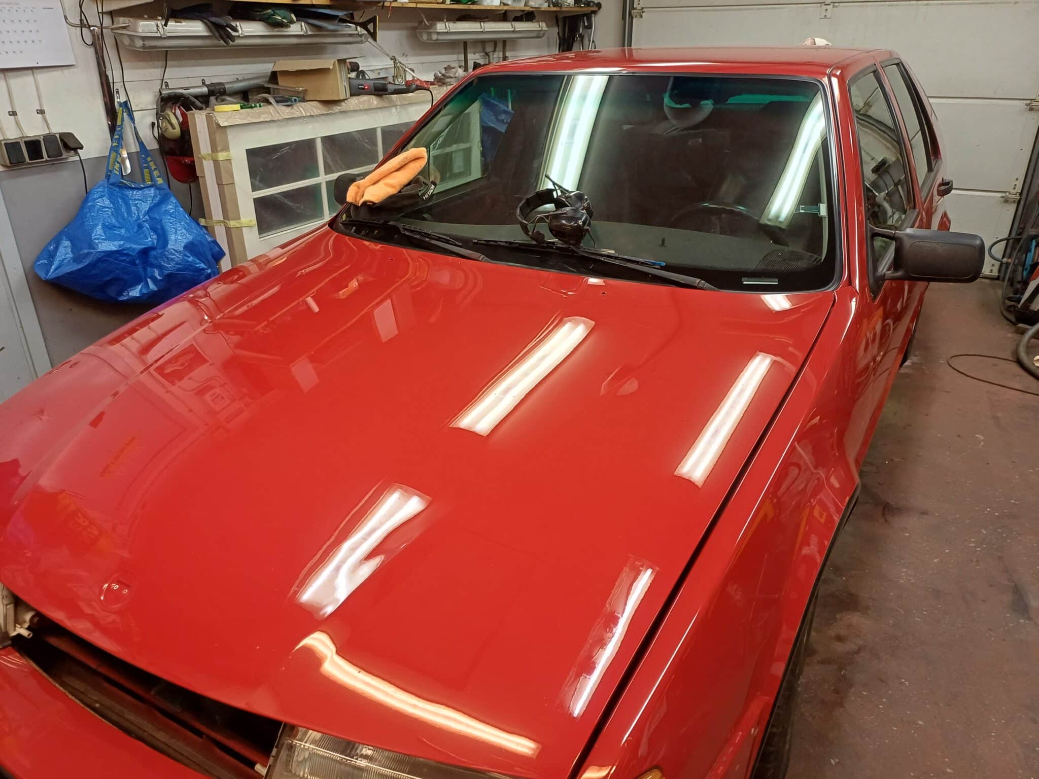 Expansionskärl, slangar och annat smått återmonteras så även en nylackad ventilkåpa. Oljan byts och bilen provstartas. Allt verkar lira, bara några små justeringar krävs.