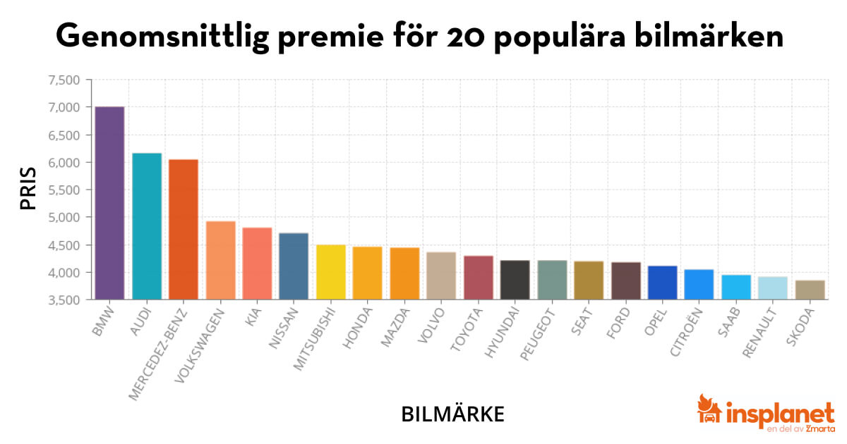 januari 29, 2019 kl. 16:56 #454974Jag bifogar en bild med info om pris för bilförsäkring för det olika bilmärkena i Sverige (Genomsnitt).
