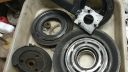 Moloken far jag hemåt med bilen. Lite surfande så ser jag att möjlig felorsak kan vara ett lager i magnetkopplingen på kompressorn. Jag lättar på remmen och det är inget tvivel om saken. Lagret har tackat för sig och även lamellens gummi. Förmodligen p.g.a. värmeutvecklingen från det trasiga lagret. Allt detta som följd av att remspännaren åtgärdades.