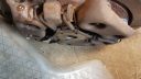 Pedalrörelsen är mycket kort och senaste åren har pedalen stoppat stumt innan den gått helt ner i golvet. Kopplingen har varken slirat eller ”legat på”, utan fungerat normalt rent mekaniskt förutom den korta rörelsen. Jag såg nu att hävarmen har böjts nedåt mellan urtrampningslagret och pinnen till slavcylindern, vilket hindrar hävarmen att gå tillbaka helt så den kommer ut genom hålet mitt för slavcylindern. Detta har dock inte spelat någon roll eftersom jag ändå haft hävarmens justerskruv långt inskruvad för att urtrampningslagret ska nå fram till tryckplattans nav. I detta läge har det varit mycket nära att hävarmarna som håller urtrampningslagret skrubbar mot tryckplattan när pedalen trampas ner i botten. Allt är helt enkelt väldigt kritiskt.