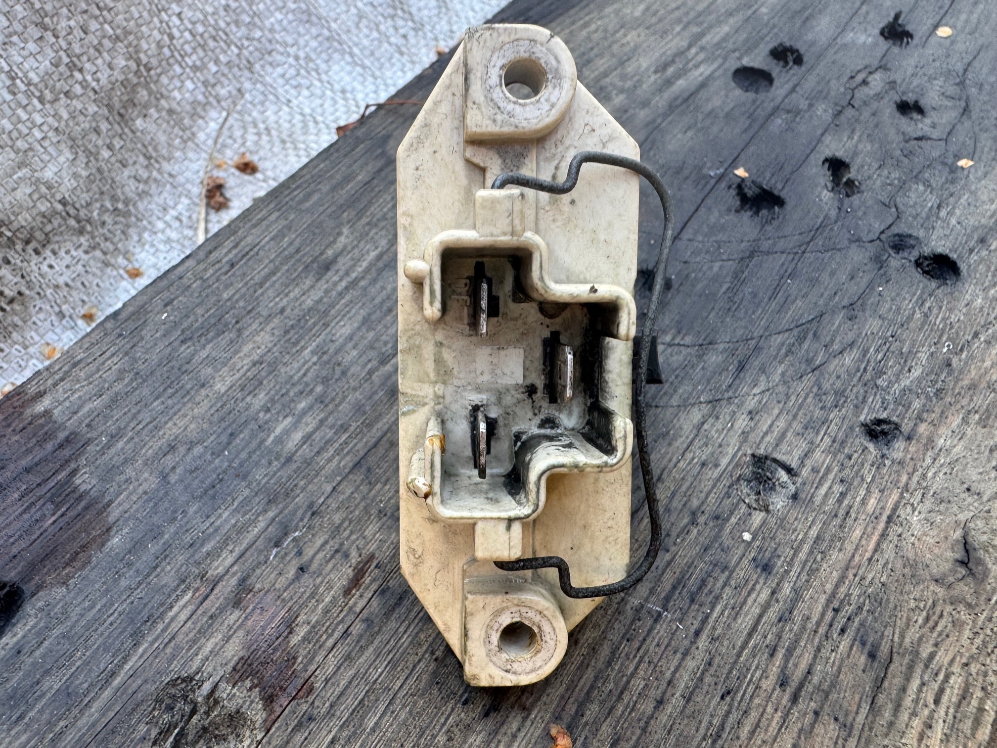 Laddregulator inköpt på SSKR för Bosch generator.SAABGUNNARS propå att generatorer med integrerad laddregulator har ett anslutningsbleck falsifieras härmed. Min orginal Bosch generator 35A på DSF 172 orgialmotor har inte integrerad laddregulator, utan den klassiska lösningen med borstbrygga plus separat laddregulator placerad på höger hjulskärm nära batteriet och likväl har den anslutningsbleck.