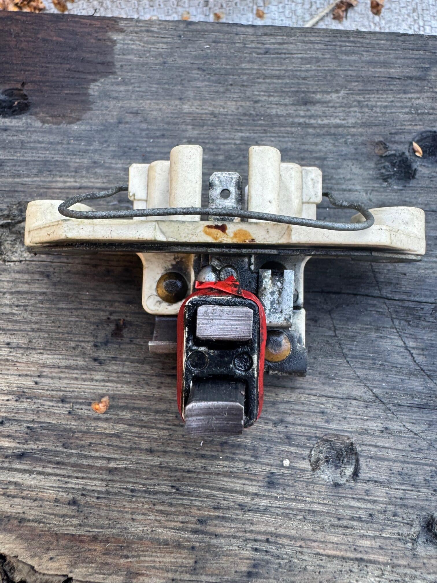 Vy bakifrån 55 A (?) generator med bortagen borstbrygga-kontakt alt laddregulator