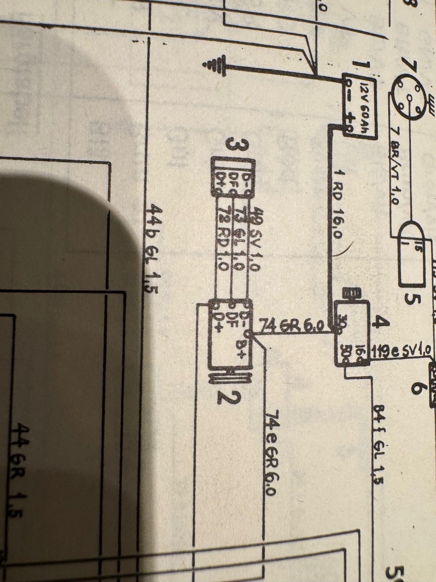 Påpekandet och frågan gäller – att verkligheten inte stämmer med kopplingschemat i gällande VHB för 99 -73. Kopplingschemat anger D+ DF och D- (intern-) koppling endast emellan laddningsregulator och generator inte till något annat don. 3-polkontakten i befintlig härva har svart röd och gul kabel till laddningsregulatorn.