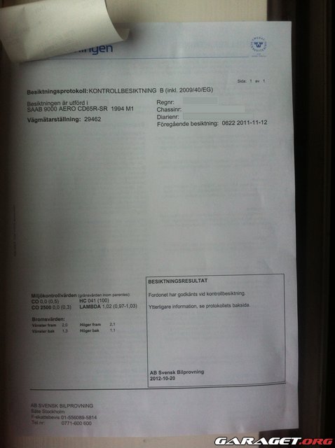 Forum / Modellspecifika forum / OG900 / Hur gick besiktningen….