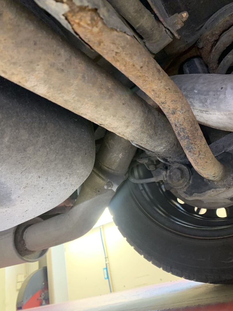 Den högra momentstags bussningen främre ser ut som den varit med om 2-3 världskrig. (Bild 1)