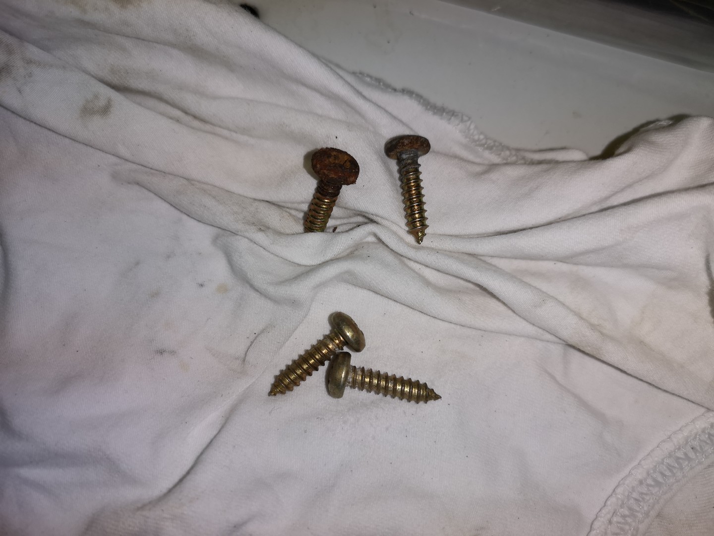Jag fick byta två skruvar som blivit fula mot nos orginslskruvar.