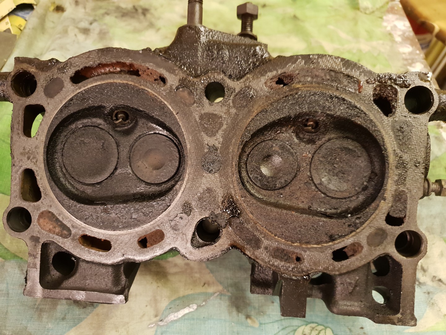 Topplockens vattenkanaler var inte igensatta, det såg ovanligt fräscht ut överlag i motorn faktiskt…Nu har jag tagit ut motor och låda för kopplingen var dålig och lådan på gång också, så jag ska ta och spola motorns vattenkanaler ordentligt och byta alla slangar, kolla alla rör en gång till.
