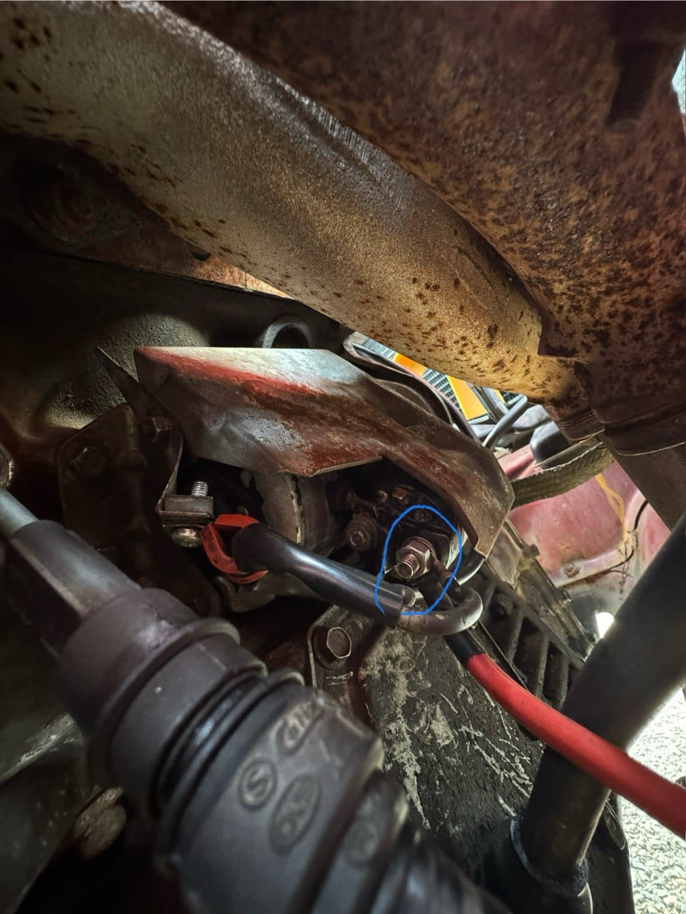 Hej. Jag har varit frånvarande pga en olycka men nu har jag äntligen fått ordning på startmotorn. Tack för alla tips och råd. Min okunskap gjorde att detta blev svårare än väntat. Alla kablar satt som de skulle men en mutter hade lossnat från solenoiden och då antar jag att det blev problem med jorden.