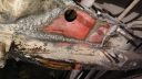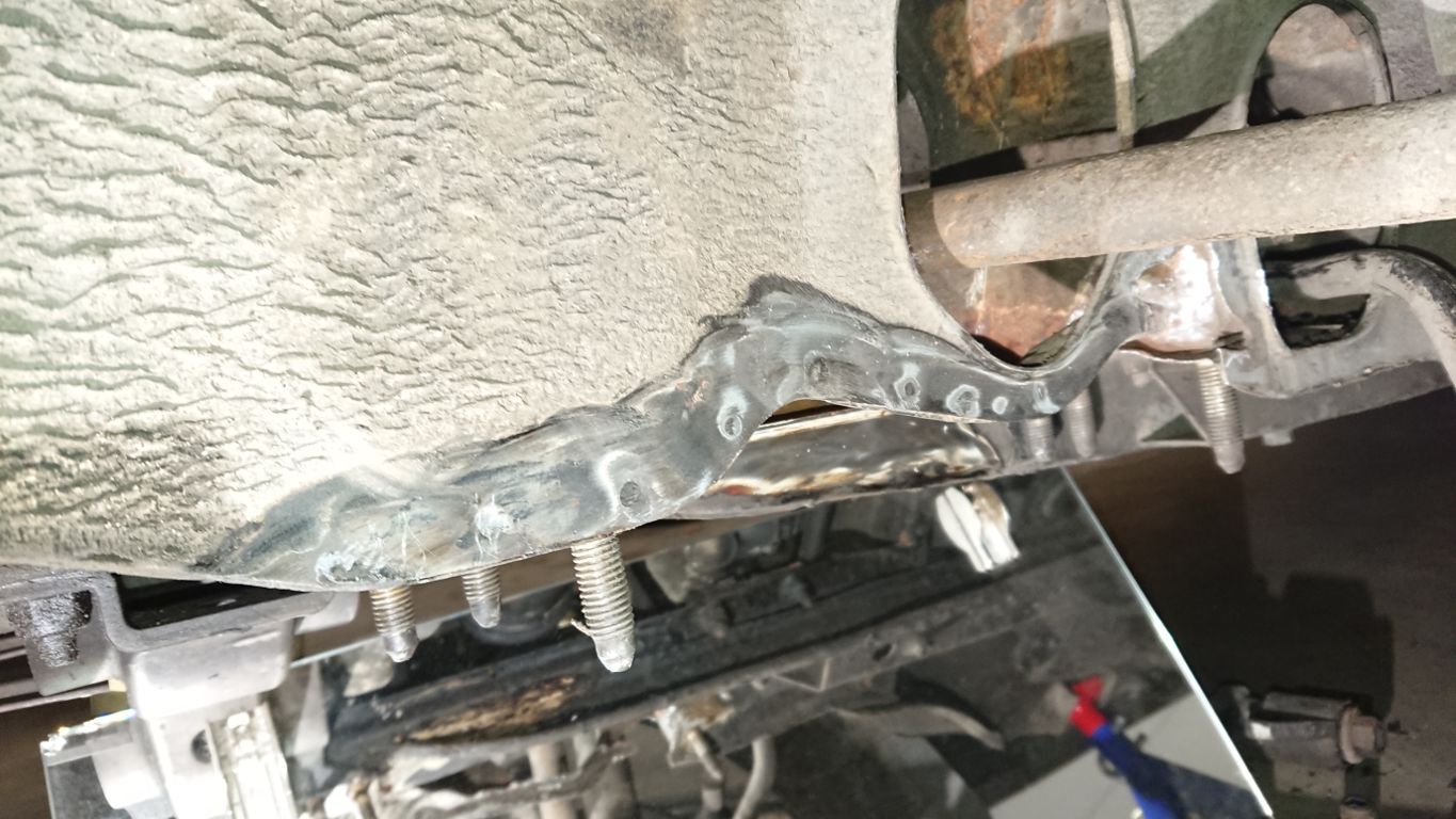 Har ett avlångt hål in mot motorn. Ska jag kapa ur för att lägga i plåt eller fylla med svetsen? Det bör gå att lägga igen med svetsen tycker jag. Vore bara skönt med någon annans synpunkt. Ska hämta reparationsplåt imorgon. Do ser jag mer vad som är lämpligt.