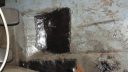 Slutklämmen på lagningarna är ju rostskyddsmålning och återställning av de bitumenmattor (asfaltsgummimattor) som täcker golvet. Jag gör mallar av ritpapper, det är enkelt att få konturerna av lagningen genom att med en oljig handske dra längs kanterna.