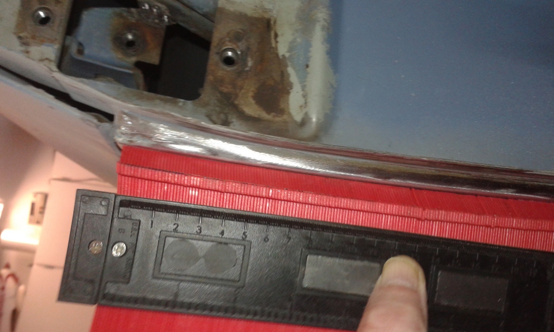 Vid kontroll av dörrens passning så visade det sig att spackellagret på framskärmen var alldeles för tjockt, till och med så tjockt att dörrframkanten tog i och bröt bort en del. Skälet var att dörrframkanten låg utanför dörrstommen och stack ut ca 5 mm och skärmen hade justerats efter dörren med ett tjockt lager spackel.