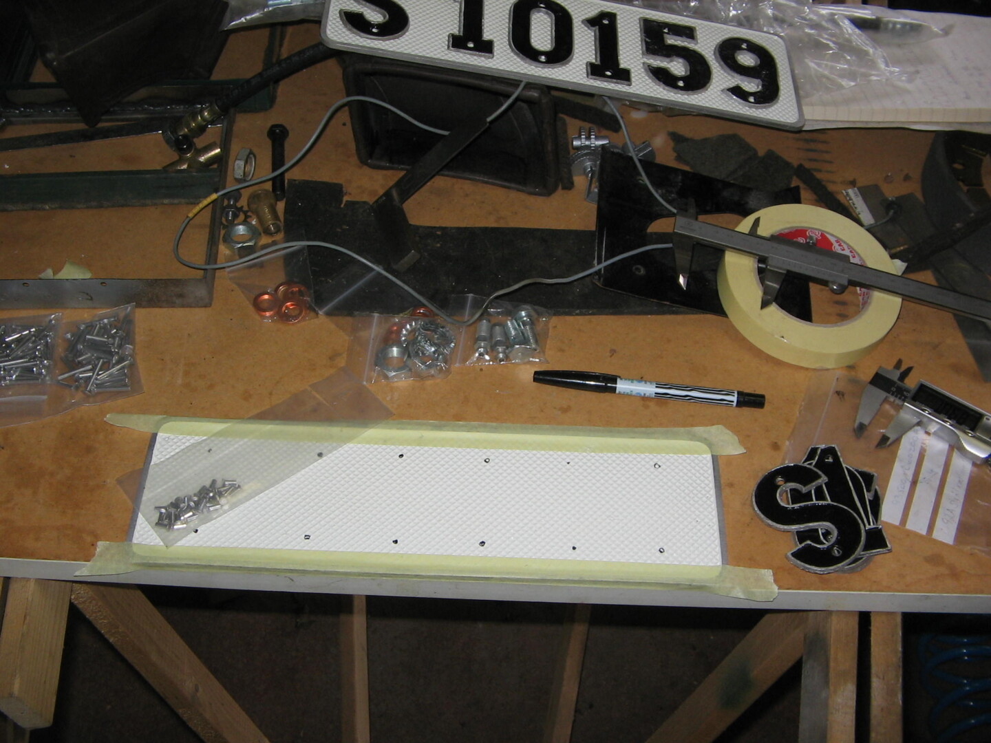 Det här hör ju inte direkt till renoveringen av bilen men jag tyckte det skulle vara roligt att ha de gamla nummerplåtarna med länsbokstav i bra skick så ett par såna blev renoverade. Det här är det reg.nummer som bilen hade från ny 1951 till 70-talet när de nya plåtarna kom.