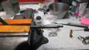 Bägge torsionsstavarna är på plats och nya främre bromsrör tillbockade och monterade.Styrväxeln har säkert legat i 20 år sen den fick en genomgång. När jag kollade den nu så visade det sig att fettet efter den tiden börjat hårdna så det fick bli ny demontering och rengöring med nytt fett trots att den inte varit använd sen förra gången. På sista bilden syns några av de shims som ibland behövs vid montering.