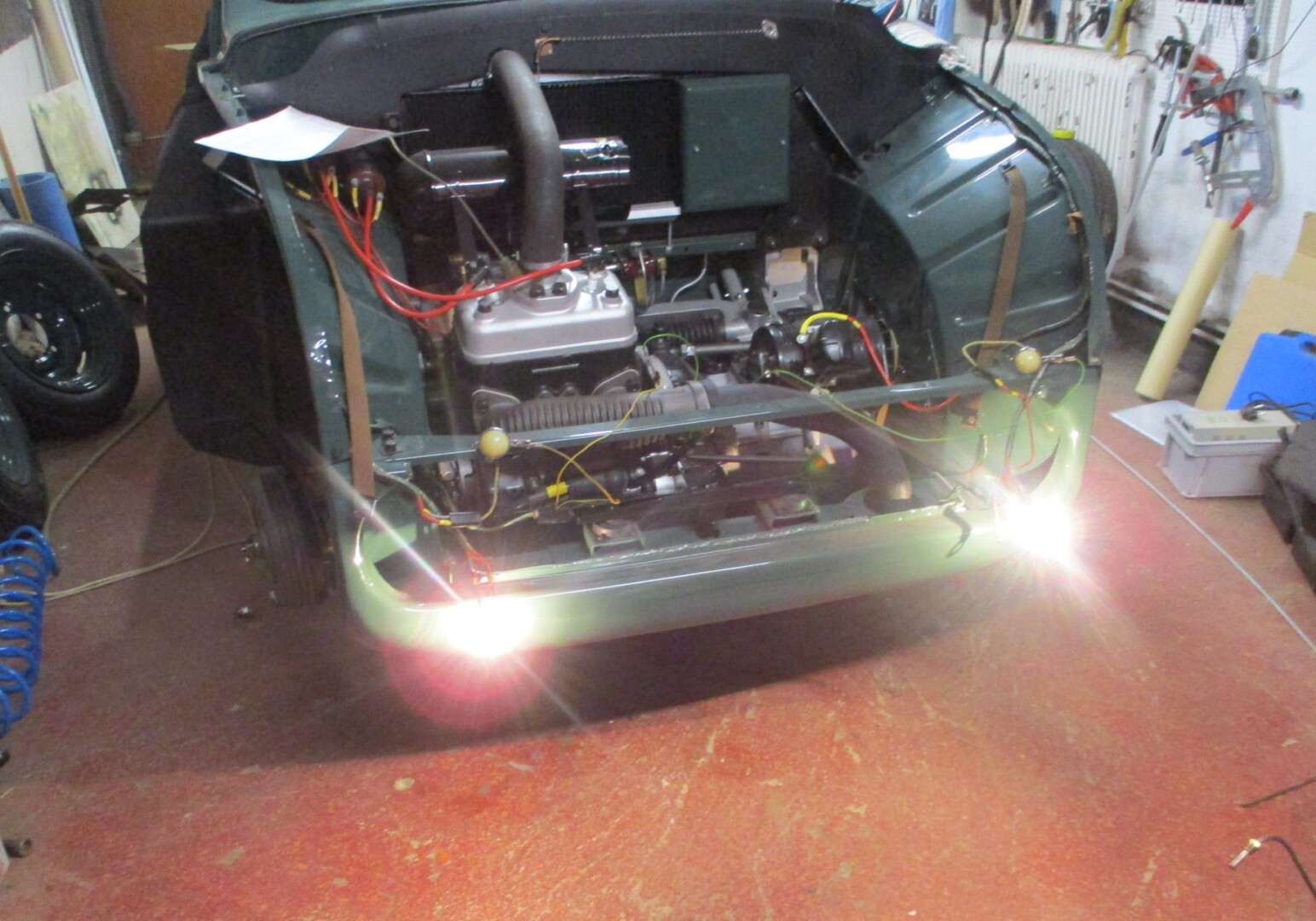 Monterade dit positionsljusen och ett par lösa glödlampor för att kolla att allt fungerade.