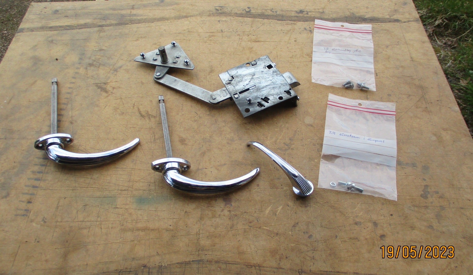Några delar framplockade för montering och dörrlåset ditskruvat.