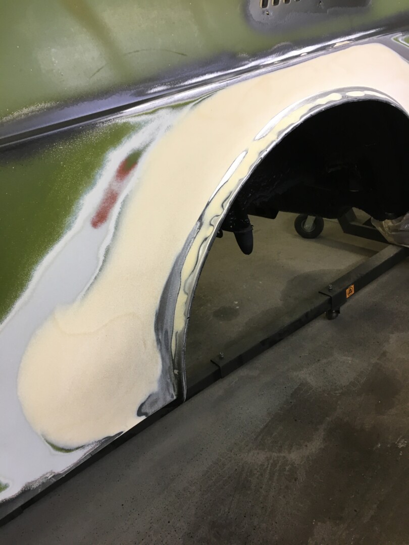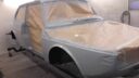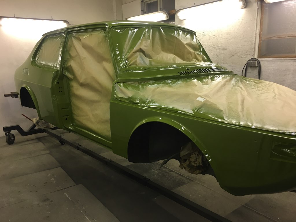Alla svetsjobb som syftade till rostlagning är utförda. Nu förbereds karossen för lackeringen. En info är att färgpriset gått upp med 100% sen förra året. En 0.9l burk idag 1600kr.