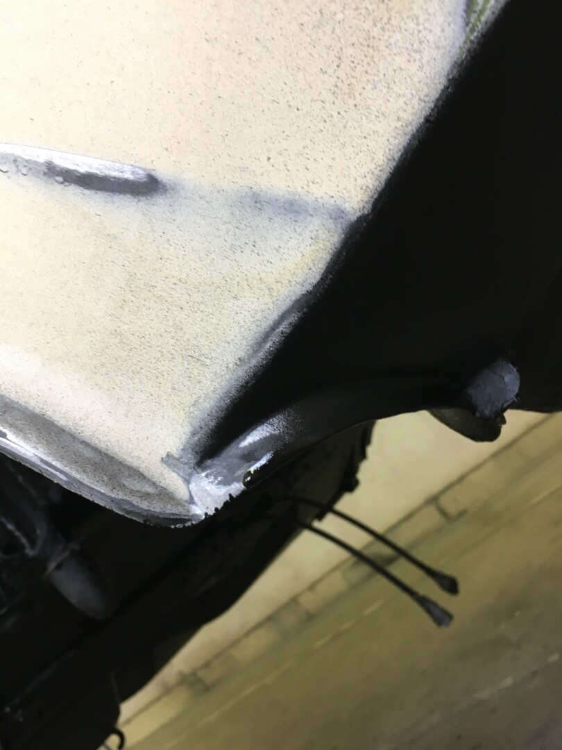 Lagning bakom stänklapp vä fram. Alla dropp kanter på hjulhusen utom dom främre fram är svetslgadeVä byte av bakre hjulhuskant. Svetsat slipat och spacklat. Bakre och främre droppkanter var dåliga dok är tröskellådorna intakta. Tecktylade dom när bilen var ny.