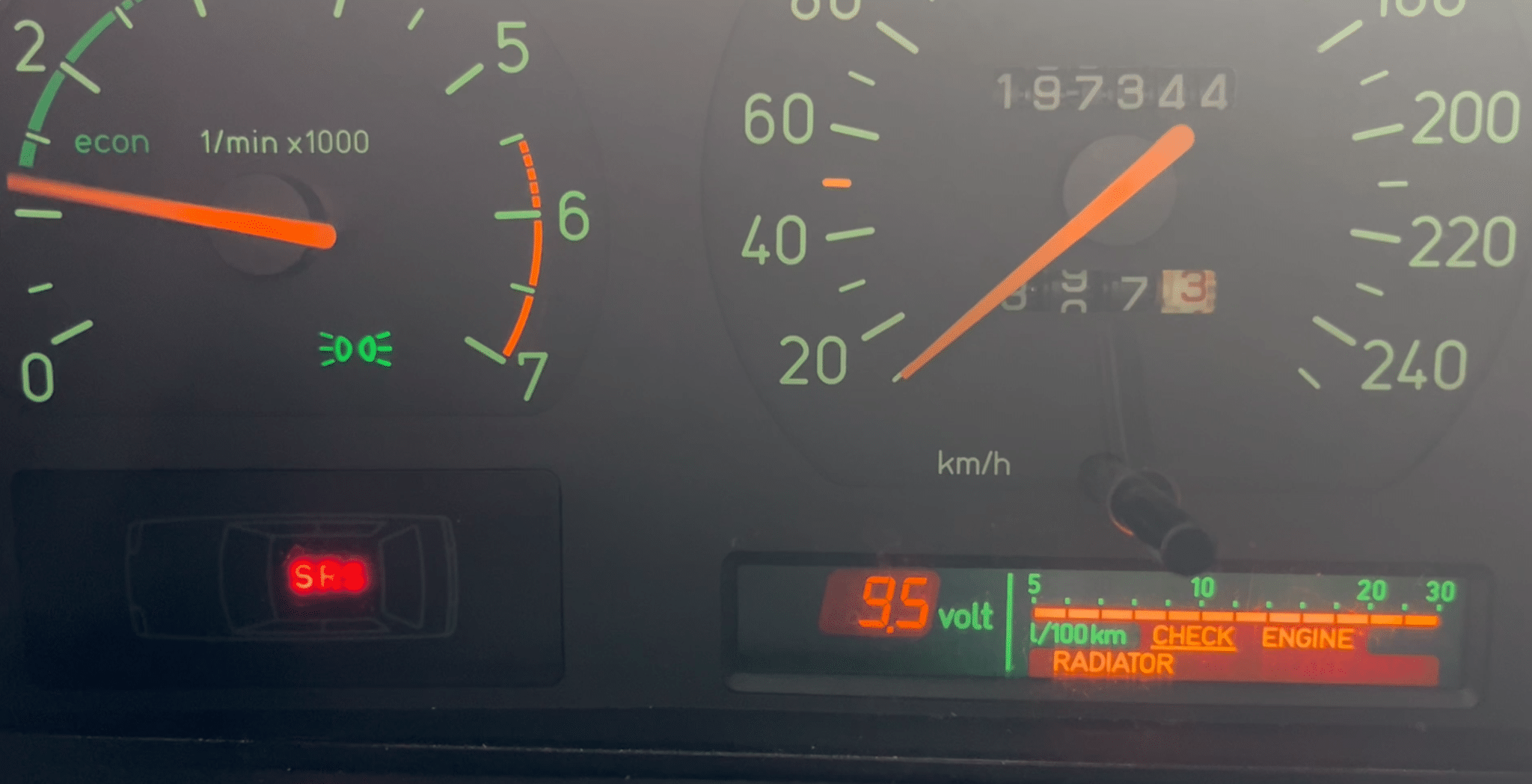 gula ”CHECK ENGINE” är oxå tänd längst ner