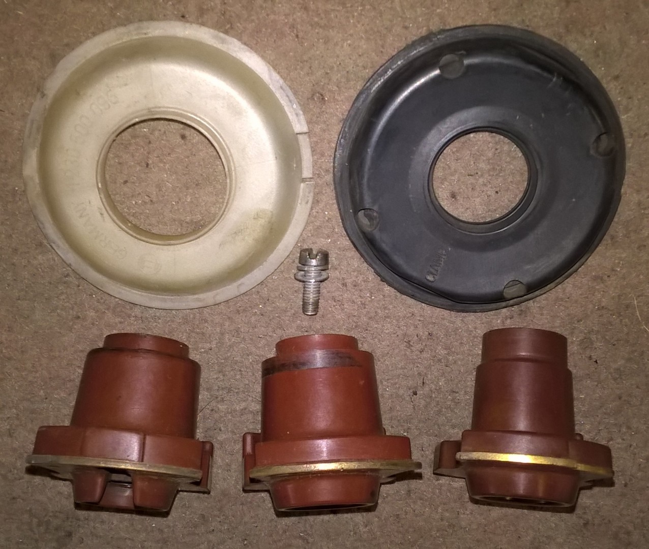Någon som vet vitsen med rotorernas olika utseende? Den med motståndet i är för radioavstörning, men varför är det ett urtag i mässingsskivan på den ena och inget urtag på de andra? 2 av rotorerna passar bara i det vita locket och den med urtaget passar bara det svarta.