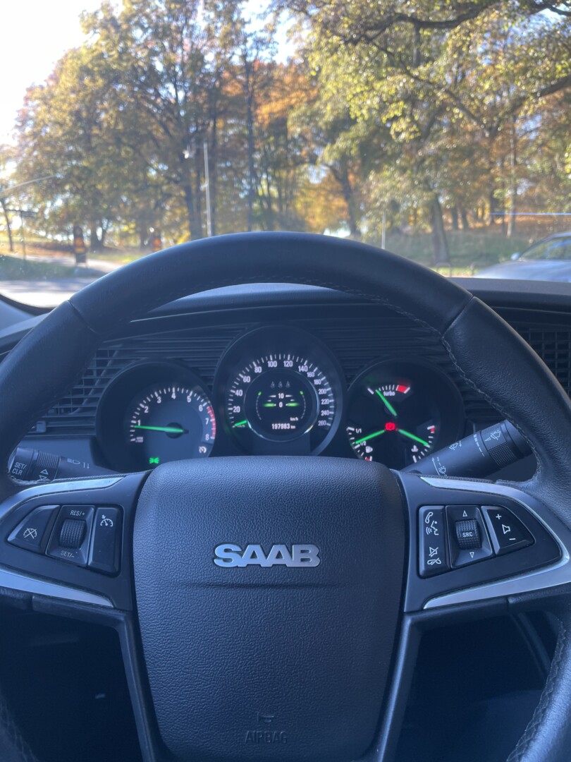 Har bytt rattlås samt precis åtgärdat kamkedjan och servat bilen. Ovanligt nog är ljusramp i LED original och fullt fungerande. Har monterat Saab Sport och Rally stripes på båda sidorna.