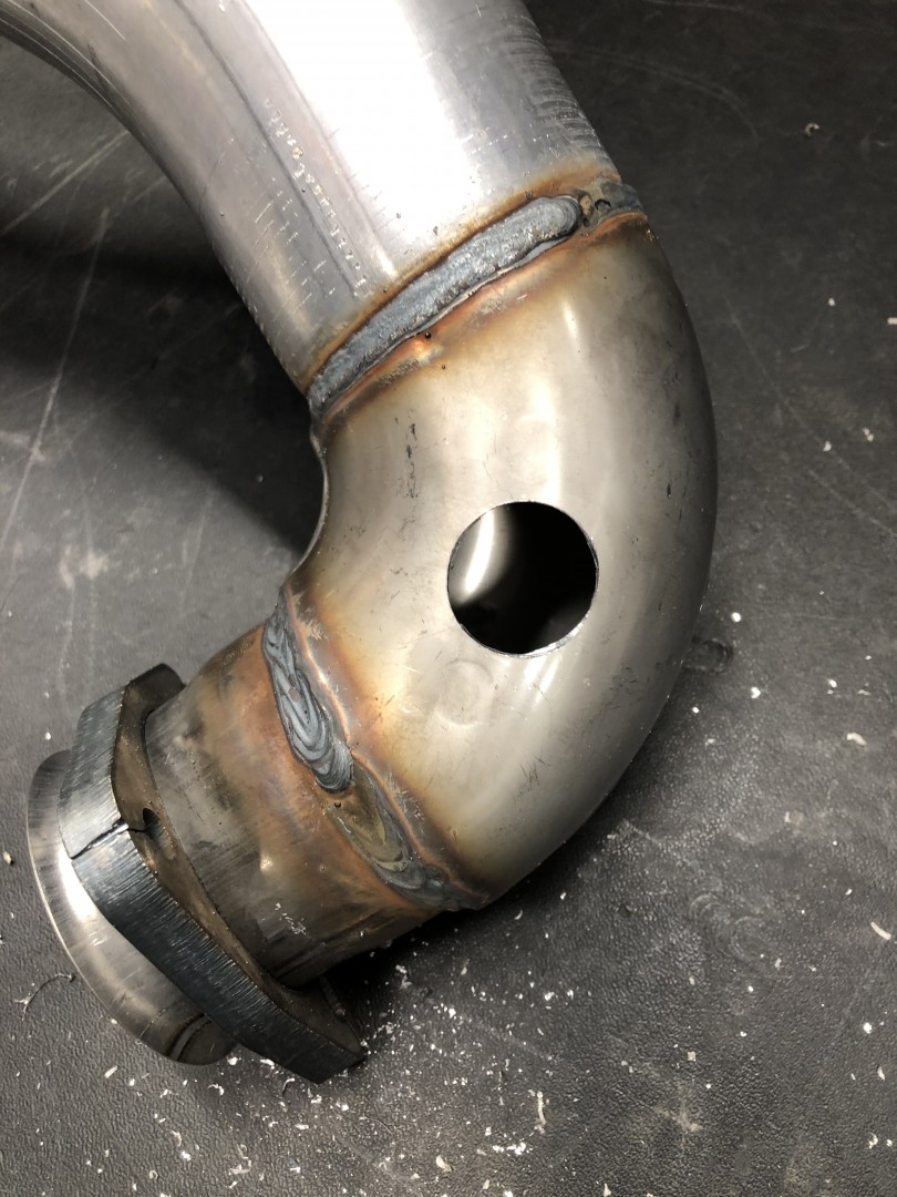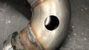 Men nu så !”Batteri-böjen” levererades utan hål för lambda. Svetsplugg till lambda införskaffades samt håltagning gjordes: