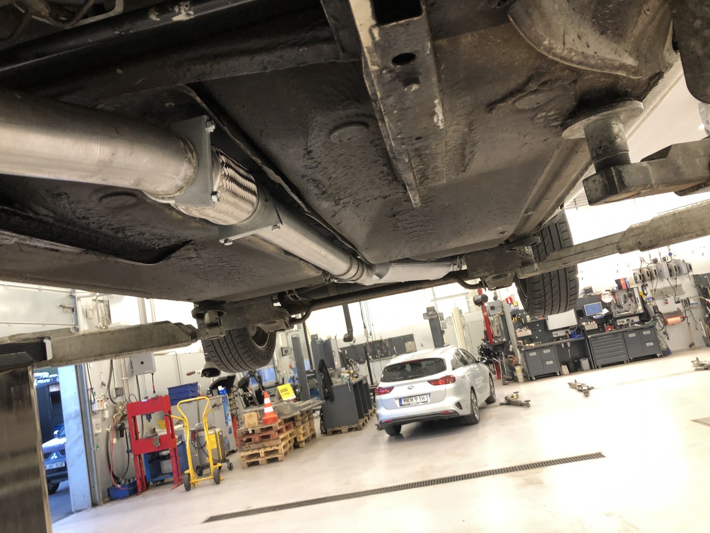 Demontering av de gamla avgassystemet med downpipe.