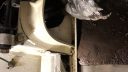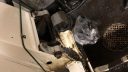 Nu börjar det te sig så här:Sen var de dags för en klassiker; den koniska låspinnen till växelstången. Som tur är så finns dessa nya på Orio, så har redan beställt en ersättare då man lätt pajar gängen när dessa ska ur. Denna brukar sitta nåt j**ligt och så var de även nu. Men med blod (bildligt talat) och mjukt våld kom den lös med lämpligt don. Bild på far som ”tog emot” donet på näsan som en projektil… Ser dock värre ut än vad de var, så alltid nåt!