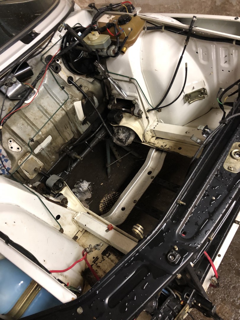 Kontakterna mellan säkringslåda och kupé har du redan noterat. Antar att du då tänkt byta hela främre härvan ? Kanske är det en bra idé men då får du t.ex. fel kontakter till blinkers på köpet.. Utifrån hur mycket du redan rivit inne i bilen är det kanske lika bra att byta hela kabelstammen så får du även med kablaget till pumpen och rätt kontakter i skarven?
