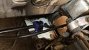 Nu håller jag på att jäklas med en bult som trilskas med att sitta fast i styrväxelbussningen. Muttern fick kapas av när jag tog den ur donatorn.