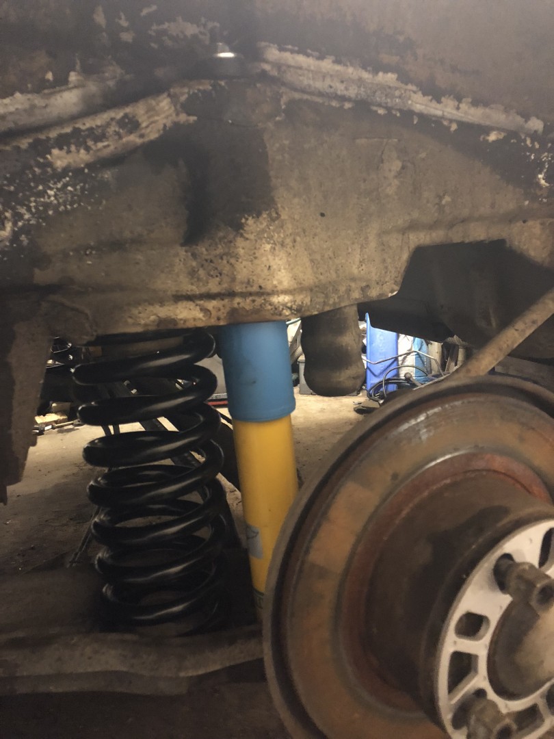 Fick nog bara en dålig bild på detta:Hjulupphängning bak är åter monterad med Lesjöfors fjädrar, Bilstein dämparna samt Powerflex-försedd krängningshämmare bak: