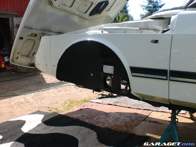 Här har jag blästrat lite rost även på skärmkanten och spacklat och målat lite, kommer ju visserligen breddare på här men kan va gött att ha det fräsht under med.
