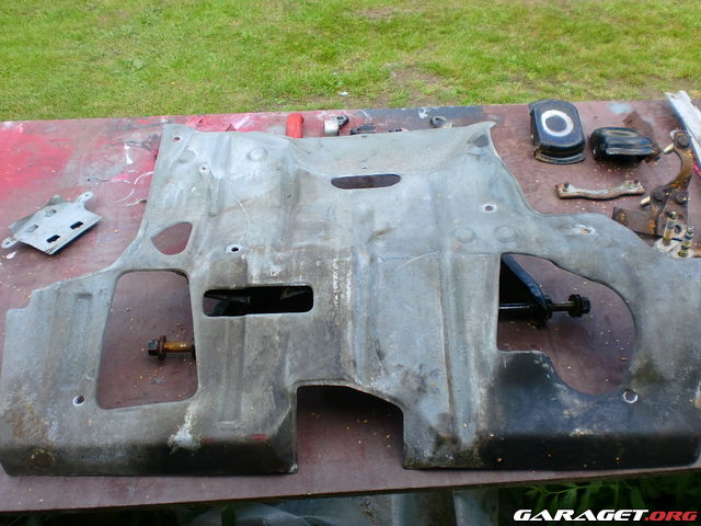 Torpedisoleringsplåten är borttagen och ska blästras, tanken är att den ska lackas i samma färg som bilen. Även länkarmar mm ska få sig en omgång.