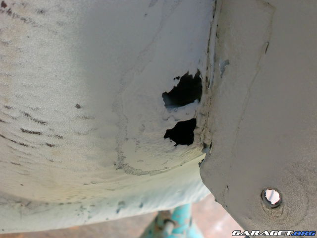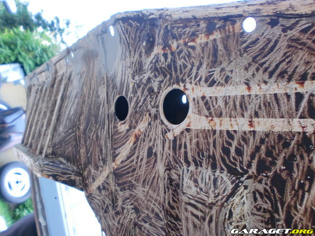 Här är det enda rosthålet jag fann i framvagnen. Renblästrat hålet här.