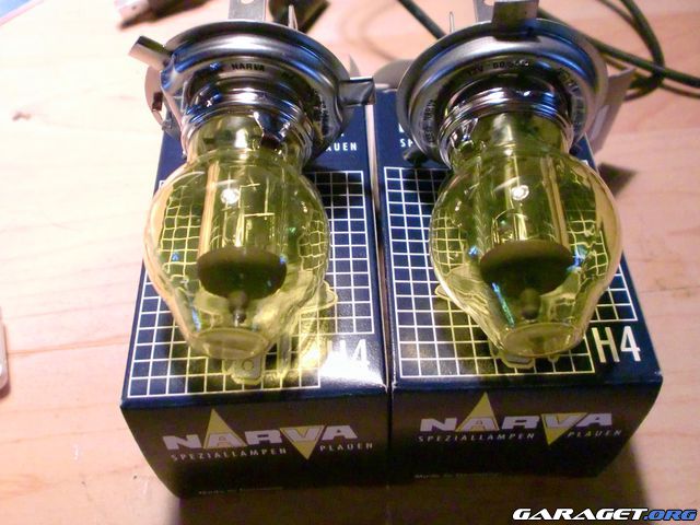 Gula H4 lampor sitter på plats med.