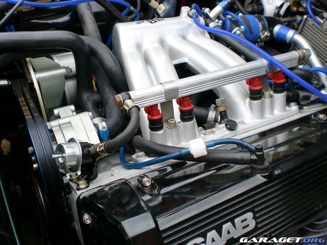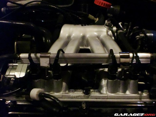 Så här såg det ut under huven då jag byggde Lh sprutet, nu är alla blå vakumslangar utbytta mot svarta.