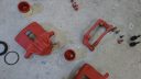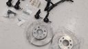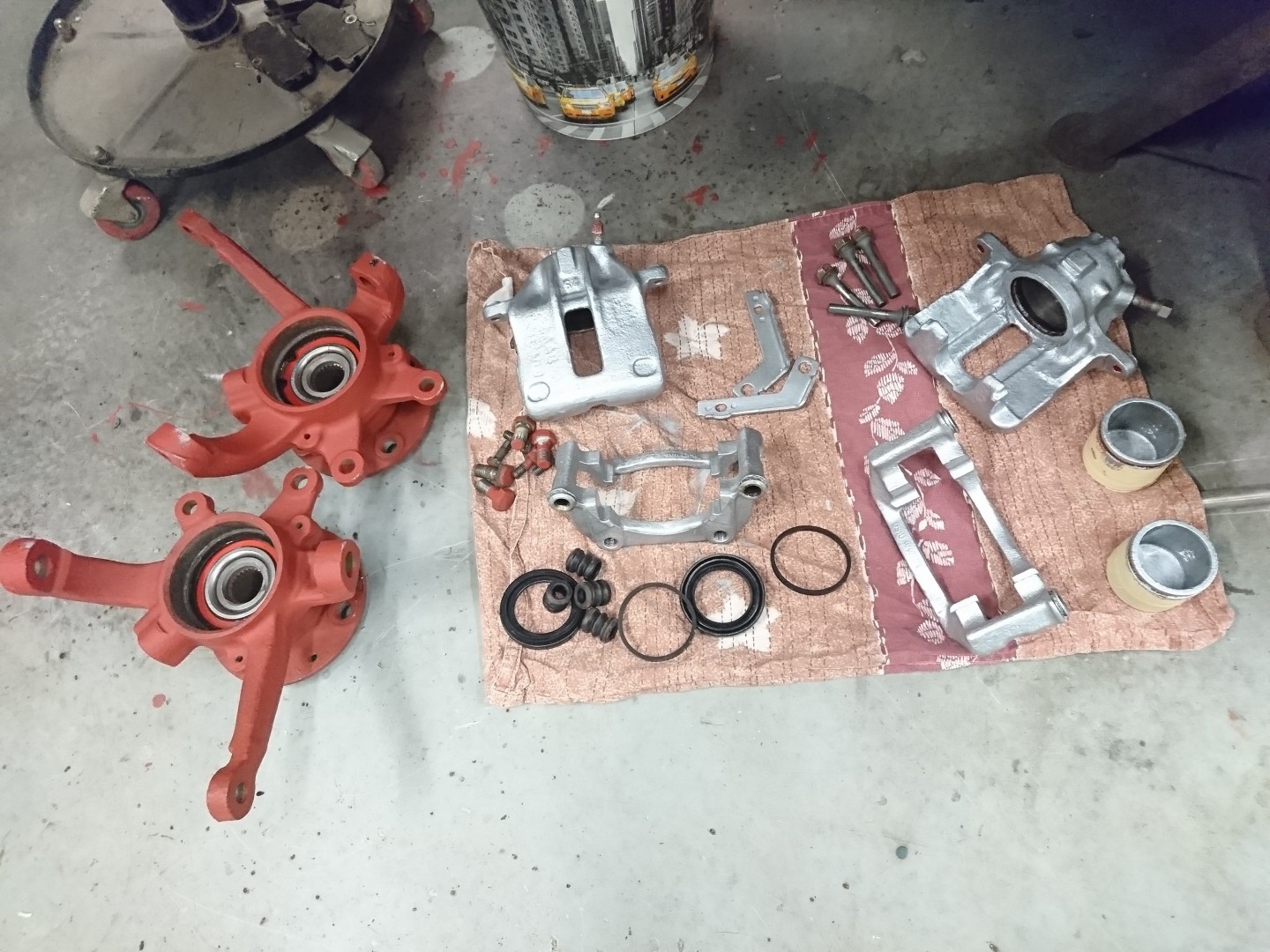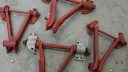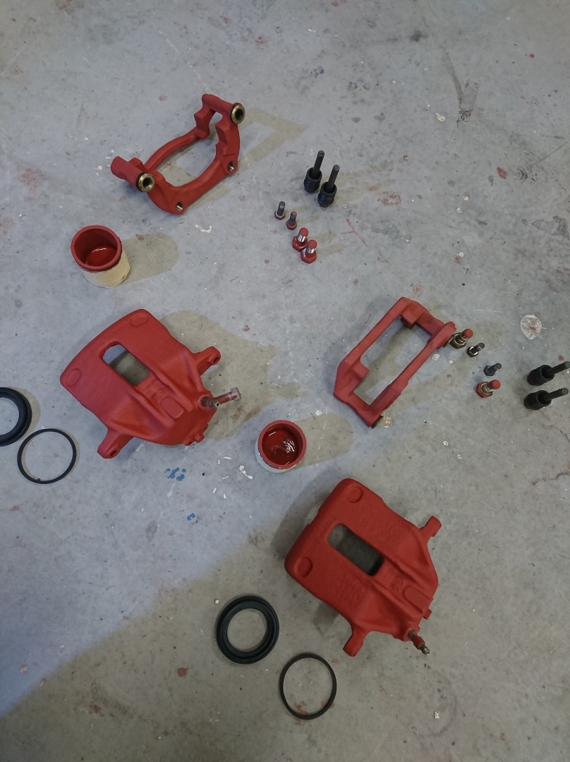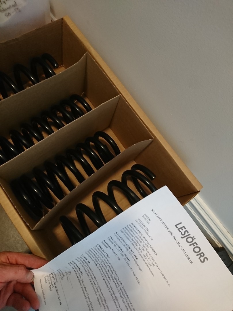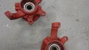 spindelhus med nya lager och nya bromssköldar men det får dock vänta med att monteras då hela framvagnen ska ner igen för att hjulhusen ska lackas upp och behandlas och alla bultar/muttrar osv ska iväg på förzinknings och länkarmar/spindelhus/bromssköldar/fjäderskål/säte osv ska lackas det med!