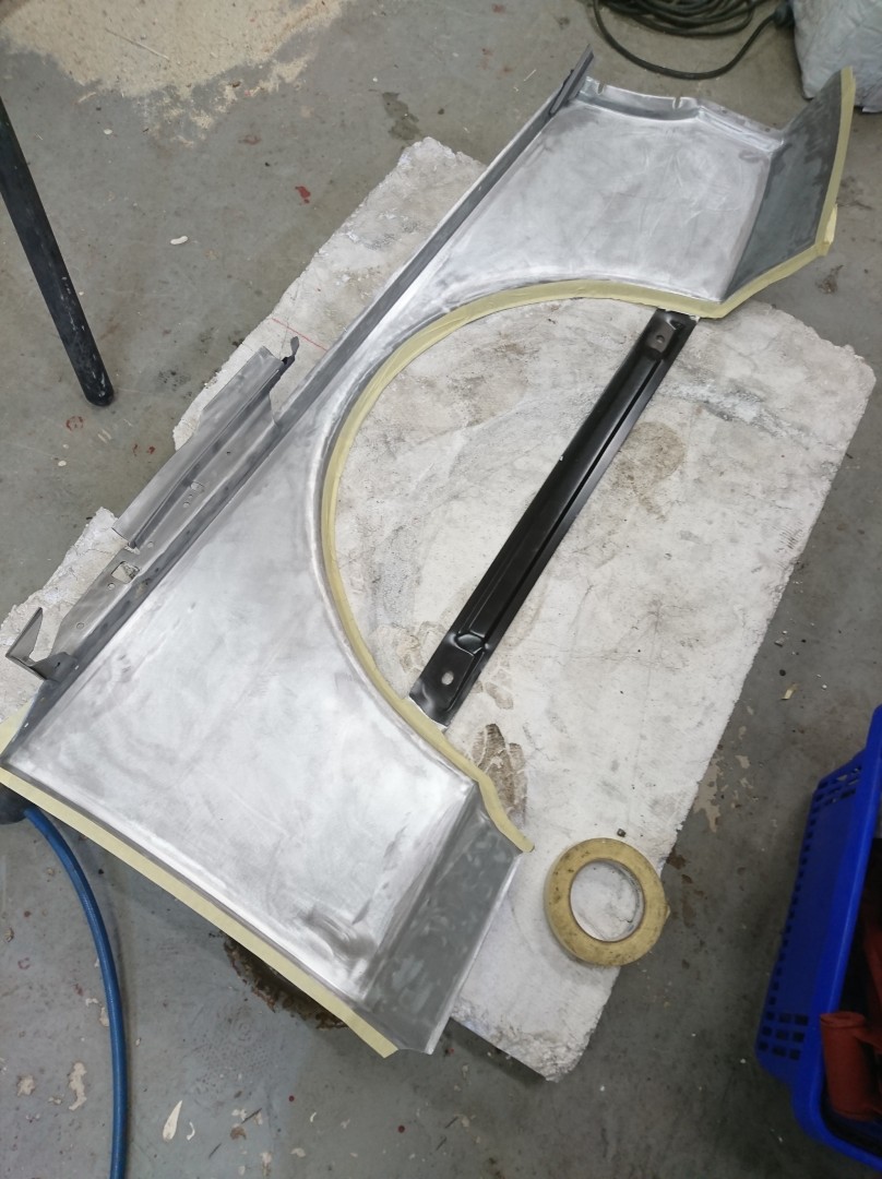 nog om bilen lite bilder på det som gjortsNästa steg blir att montera skärmen. punktsvetsa eller karosserilim det får vi se, någon som limma framskärmar förr ?