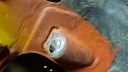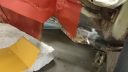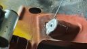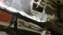 men över till lite bilderhögra övre stötdämparfäste har sett bättre ut, den gamla förstärkningsbrickan hade svullna så den försvann och detta va under. ett litet för stort hål så fila ur det och dit med ny plåt och förstärkningsbricka