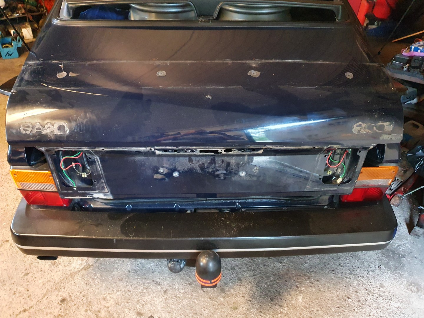 Projekttråd STCS http://forum.saabturboclub.com/showthread.php/148978-Mr_SunBear-s-Garage-Bilarna-och-projektenHar i dag lagt igen 3 hål i bagageluckan efter den gamla vingen samt lackat i orginal färg.. i morgon monterar jag tillbaka allt. Sen ska det bytas 2 packningar under autlådan som läcker lite. Byter olja i lådan samtidigt