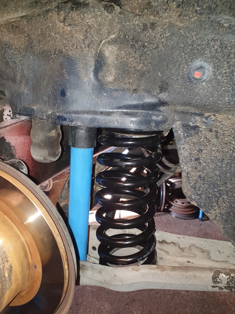 Fixade 3 mm brickor som la emellan hubb å ljullager så skivan kom ut 3mm . Så nu gick allt fritt å ser klockrent ut. Nu väntar jag bara på nya stötdämpare ifram så blir det i körning av bromsar mm. Har monterat orginal fjädrar fram å bak å orginal dämpare.. förut satt det sänksatts å hårda dämpare men vill ha mer bekväm bil.Attachments: