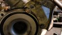 Nästa problem! primärhuskåpan va så smockad med ärj och rost så jag fick hämta en slagghammare och knacka loss allt. låg tjockt.