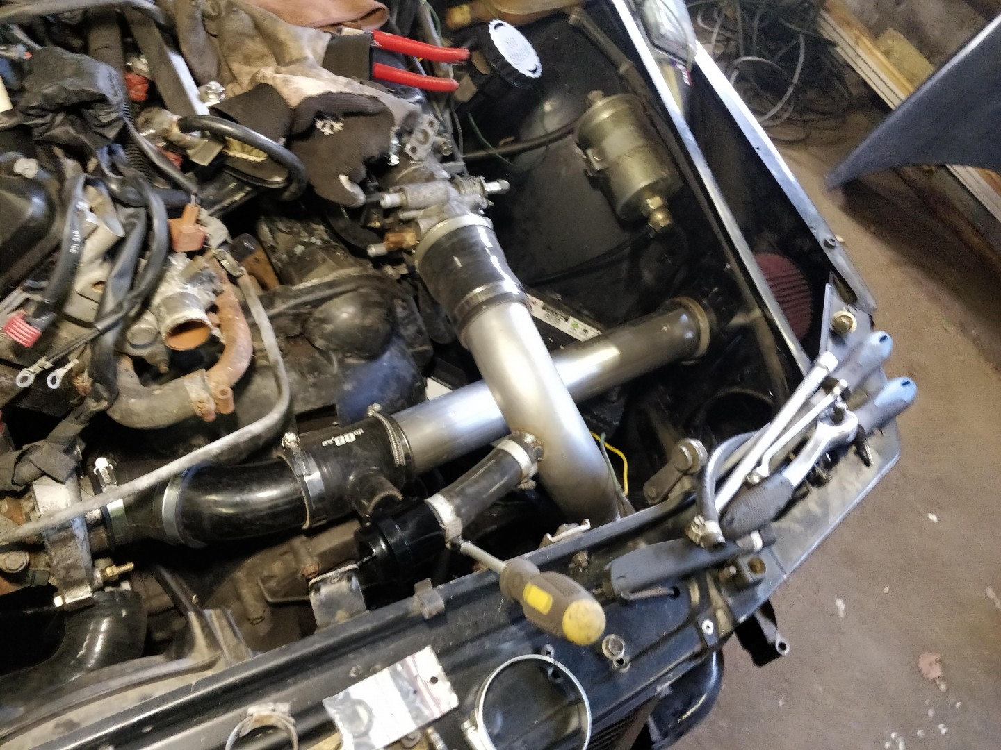 Som då igår när jag upptäckte att den stora kylslangen inte gick att montera eftersom röret till slavcylindern var böjt och vridet och fel typ överallt..