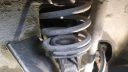 Testade en gång att bara såga rakt genom en fjäder med vinkelslipen. När fjädern gick av kollapsade den och nöp om den roterande kapskivan som i kvick följd gick i 5 bitar som sköts åt lika många håll .Montering av dom nya framfjädrarna gjordes med handkraft utan verktyg, dom nya är ganska mycket kortare än original.