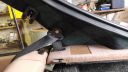 när det förberedande arbetet var klart med att försöka skrapa bort skumrester så tog jag loss metallclipsen som sitter vid handtagshålet.